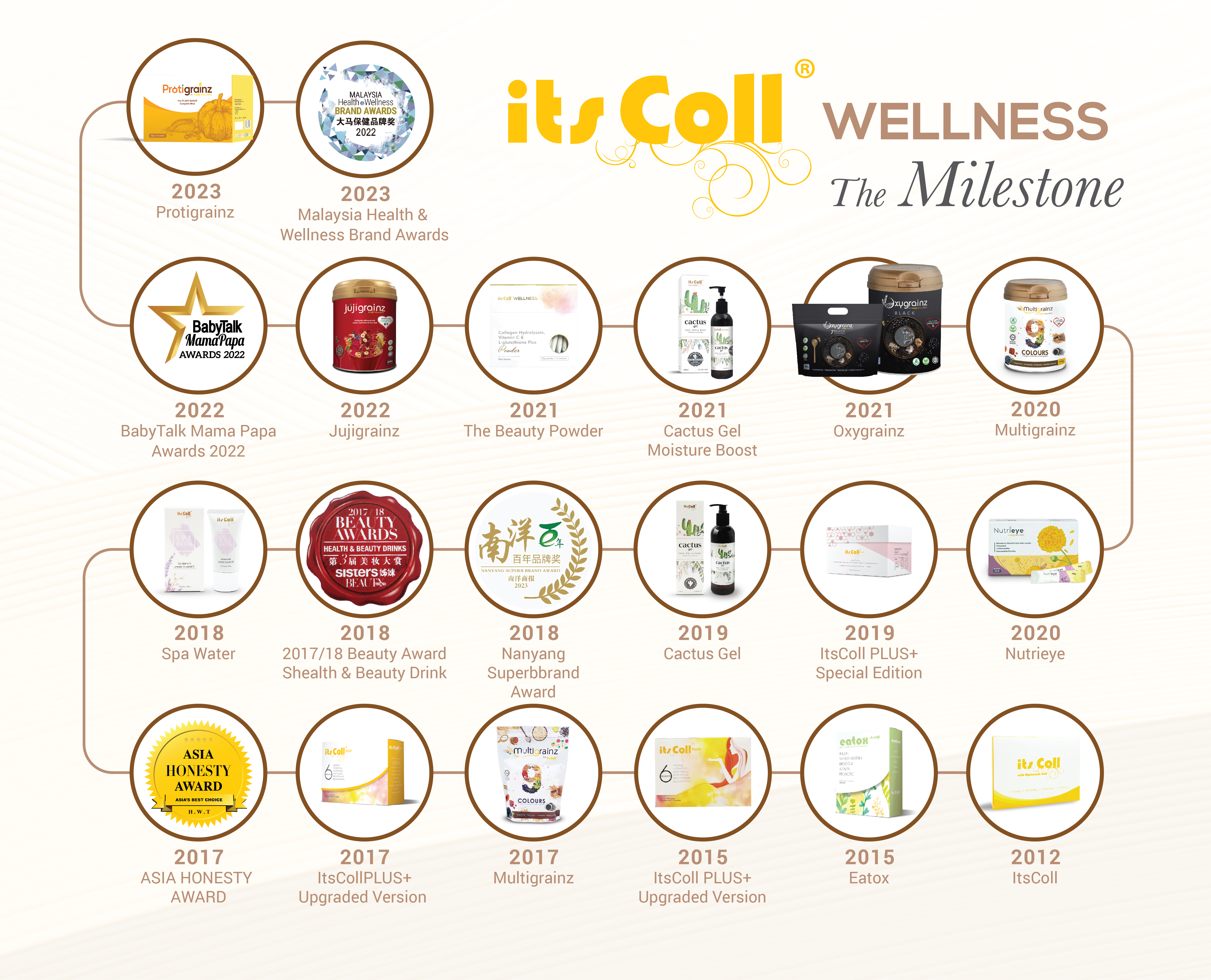 To date, itsColl Wellness has a total of 10 outstanding products: The Beauty Powder, itsCollPlus+ SE, SPA Water All In One Cream In Gel, Cactus Gel, Eatox, Oxygrainz, Multigrainz, JujiGrainz, Protigrainz and Nutrieye.